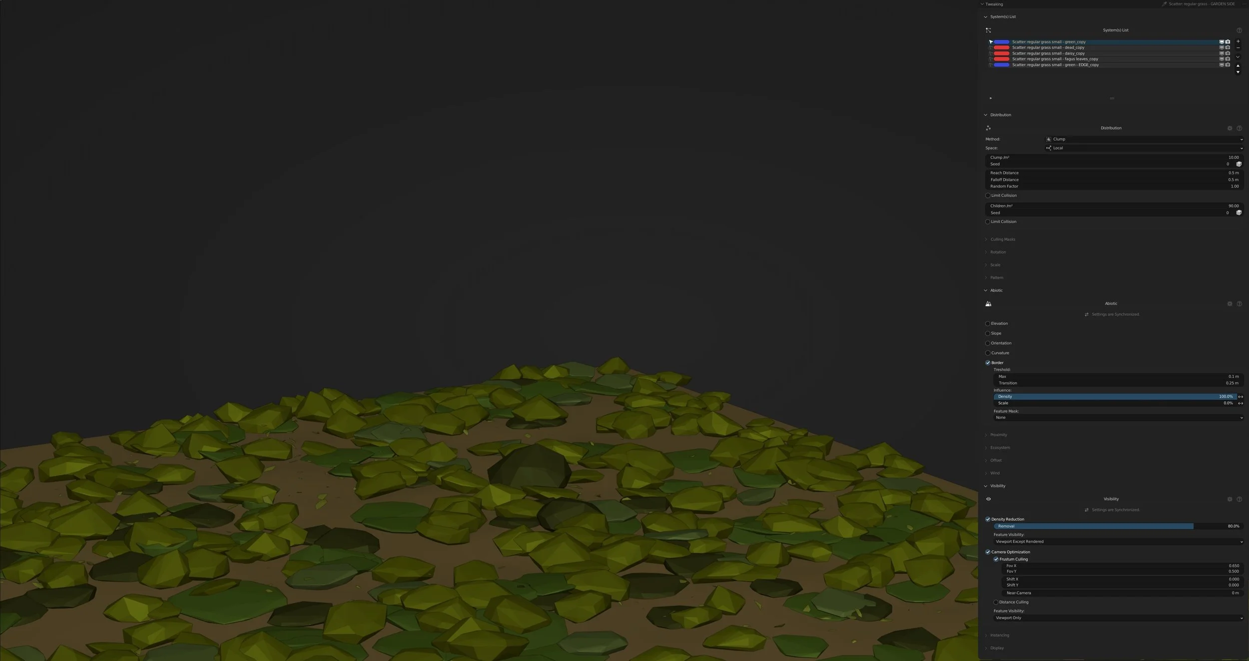 Blender posiada swój system dystrybucji oparty o Particle, ale od pewnego czasu jest to również możliwe przy pomocy Geometry Nodes. Addon Scatter5, który jest o nie oparty, to narzędzie niezastąpione każdego wizualizatora zajmującego się archviz.
